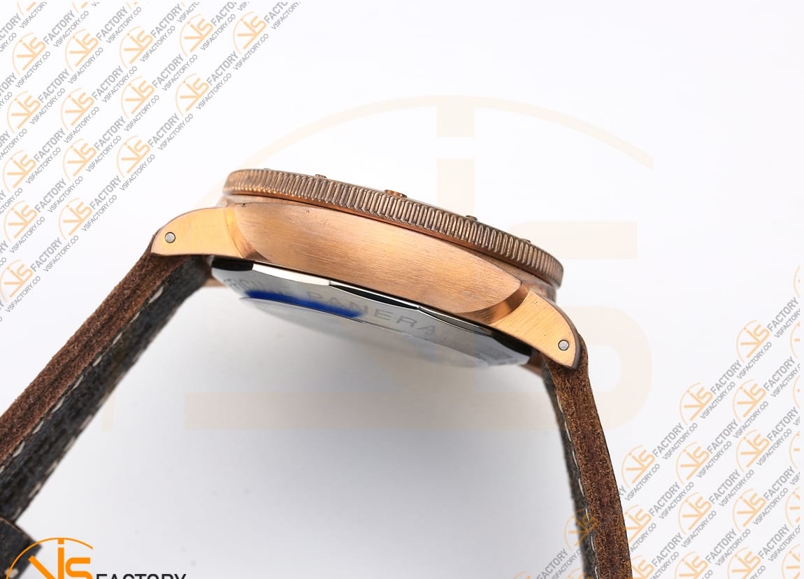 Size 47mm x 17.5mm Movement Custom designed Asian automatic movement to match the genuine Panerai P.9000 movement at 28800vph, same balance wheel position as genuine P.9000 movement. Functions Hours, minutes, seconds and date display, Independent adjustable hour hand which allows you to turn it clockwise or anti-clockwise to adjust hours and date easily, same adjusting as genuine movement. Case Real brushed bronzo case Crystal Scratch-proof sapphire crystal with colorless anti-reflection coating (Swiss standard, single-sided, same as genuine) Dial Superlumed green dial and hands (lumed with genuine Super-LumiNova); Bezel Uni-directional rotating Brushed bronze with polished edges bezel Strap Brown distressed calfskin strap Clasp Titanium tang buckle with correct engraving Water resistance >50 Meters Please be informed that this rating is merely a guide. We do do not advise submerging or immersing any replica watch in water unless you have had your watch water-proofed by a professional. We do not guarantee the product’s water-resistance and as such we do not refund, offer store credit, exchange or do a free repair on any watch that has water damage.